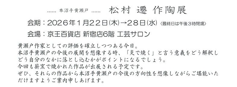……本沼手黄瀬戸…… 松村 遷 作陶展