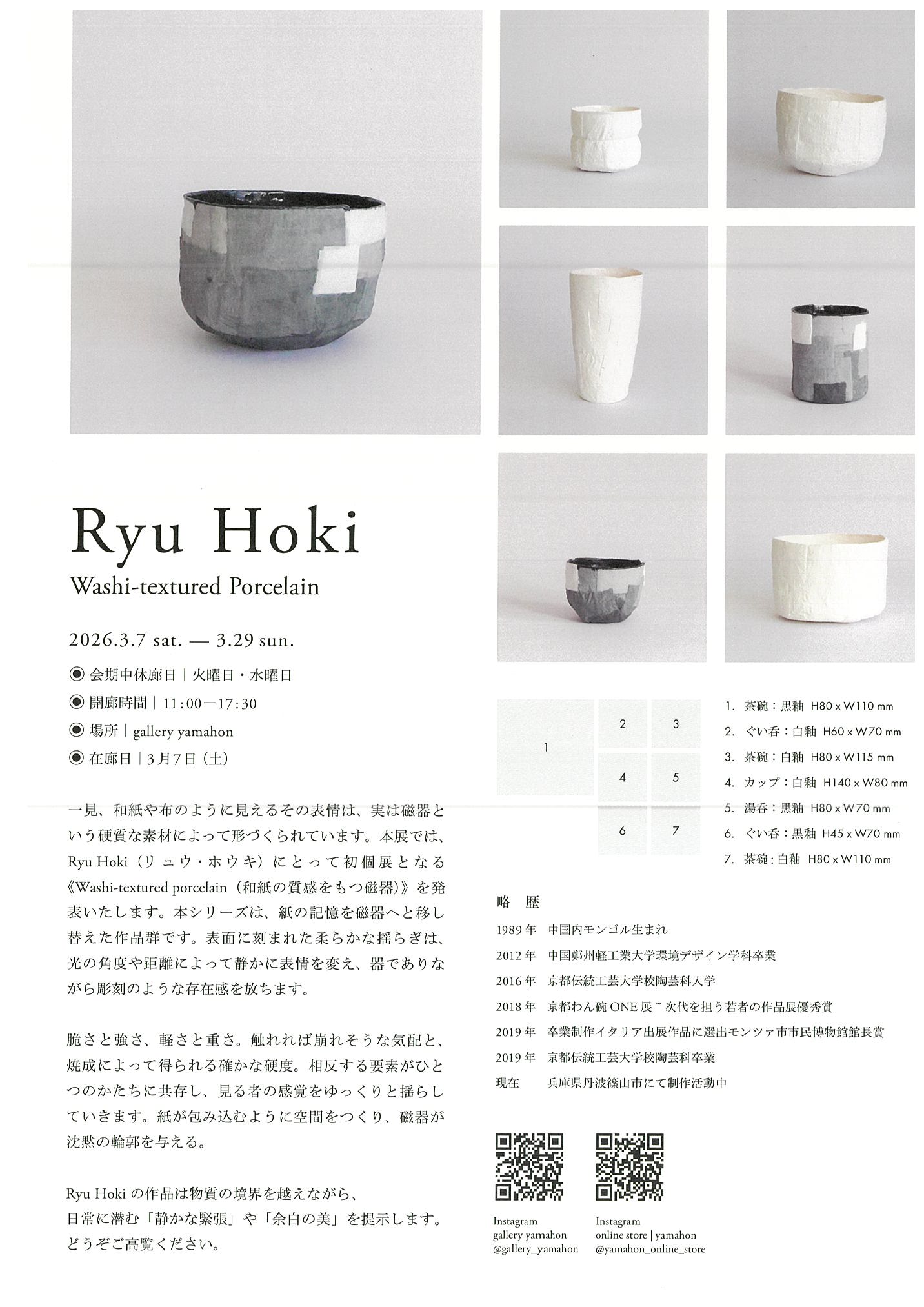 Ryu Hoki 展 – 和紙の質感をもつ磁器 –