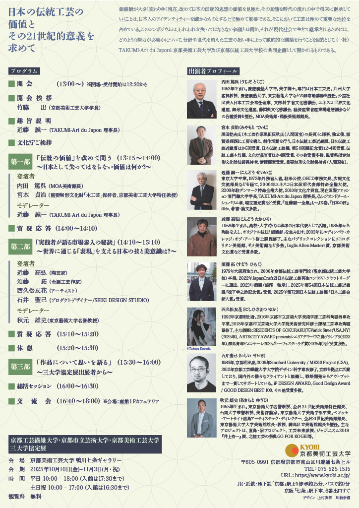 主 催|一般社団法人TAKUMI-Art du Japon、京都美術工芸大学、京都伝統工芸大学校