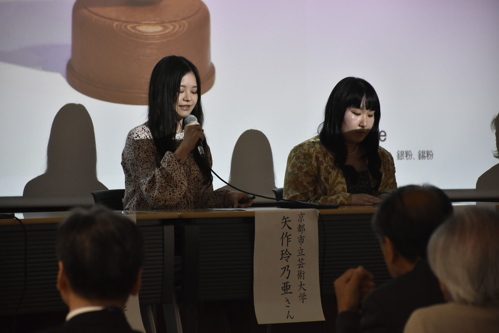 京都工芸繊維大学、京都市立芸術大学、そして京都美術工芸大学の学生たちが、本シンポジウム連携企画として鴨川七条ギャラリーで開催中の「三大学協定展」に出品している作品を中心に制作活動について発表しました。