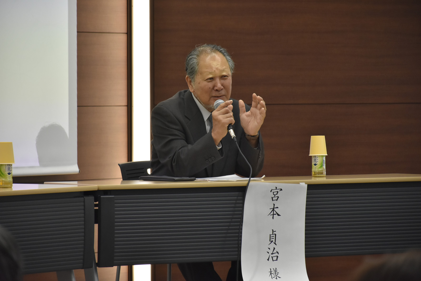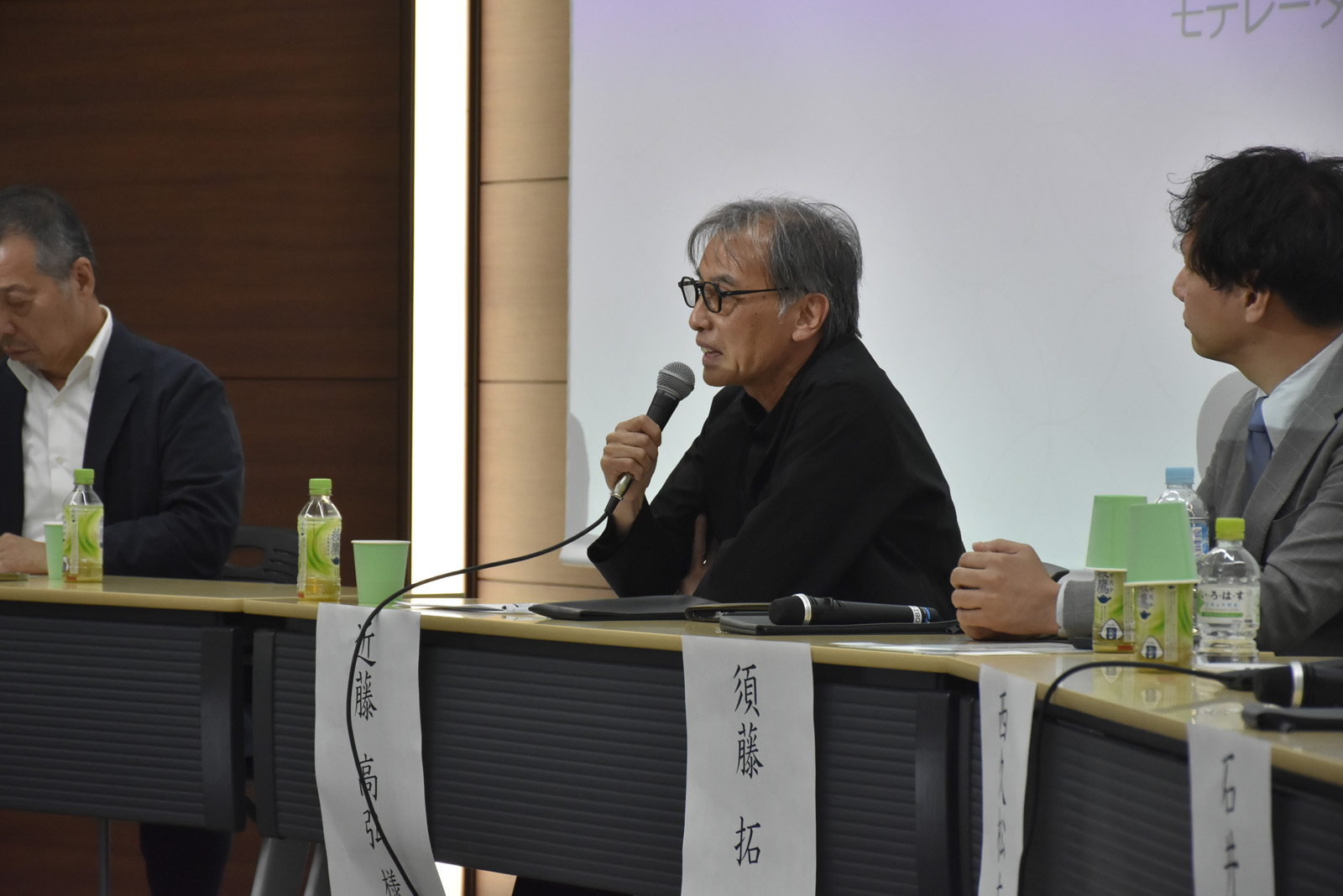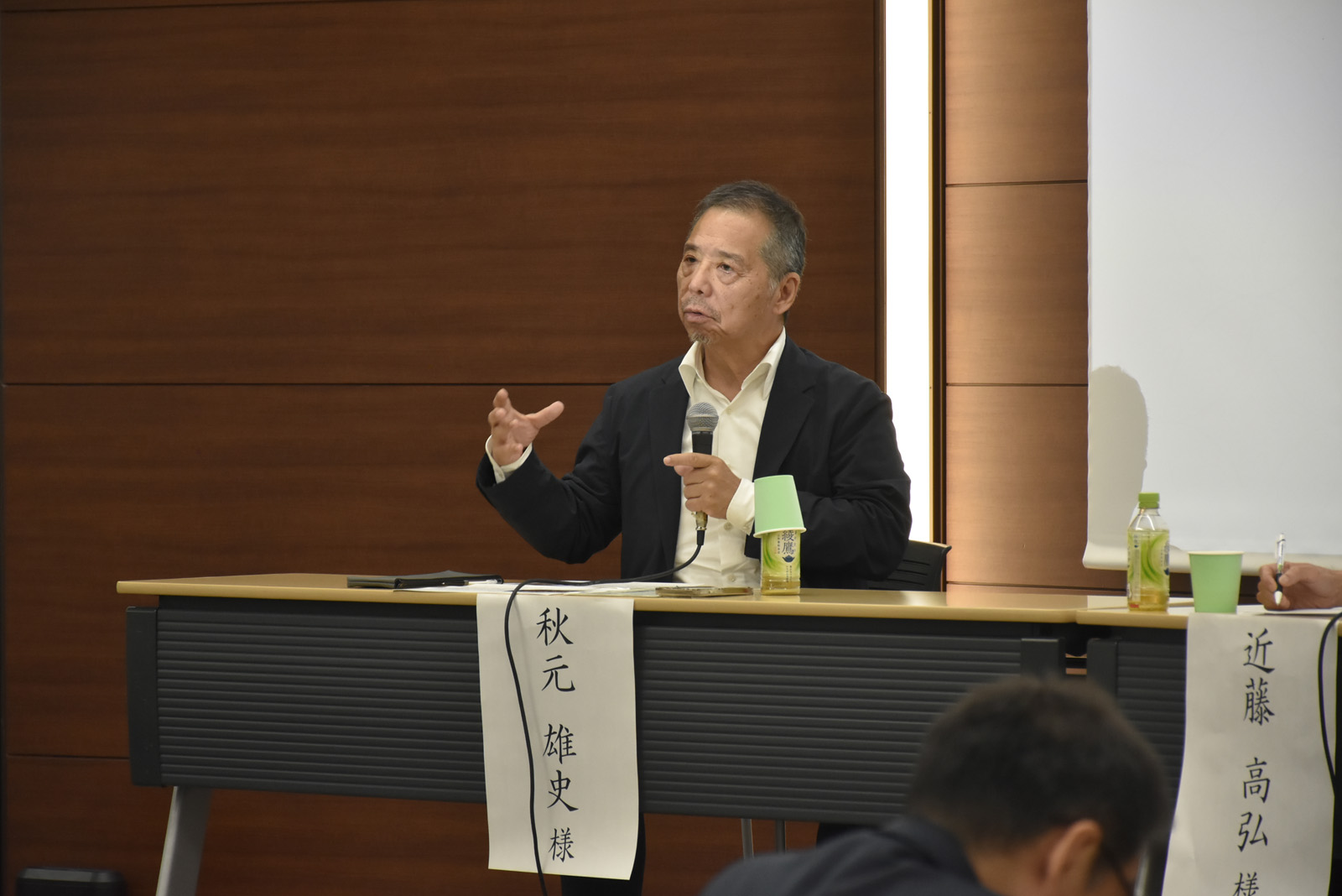 モデレーター 近藤誠一氏(TAKUMI-Art du Japon代表理事)の進行により、内田篤呉氏(MOA美術館館長)と京都美術工芸大学特任教授 宮本貞治先生(木工家/人間国宝)が登壇され、意見を交換されました。