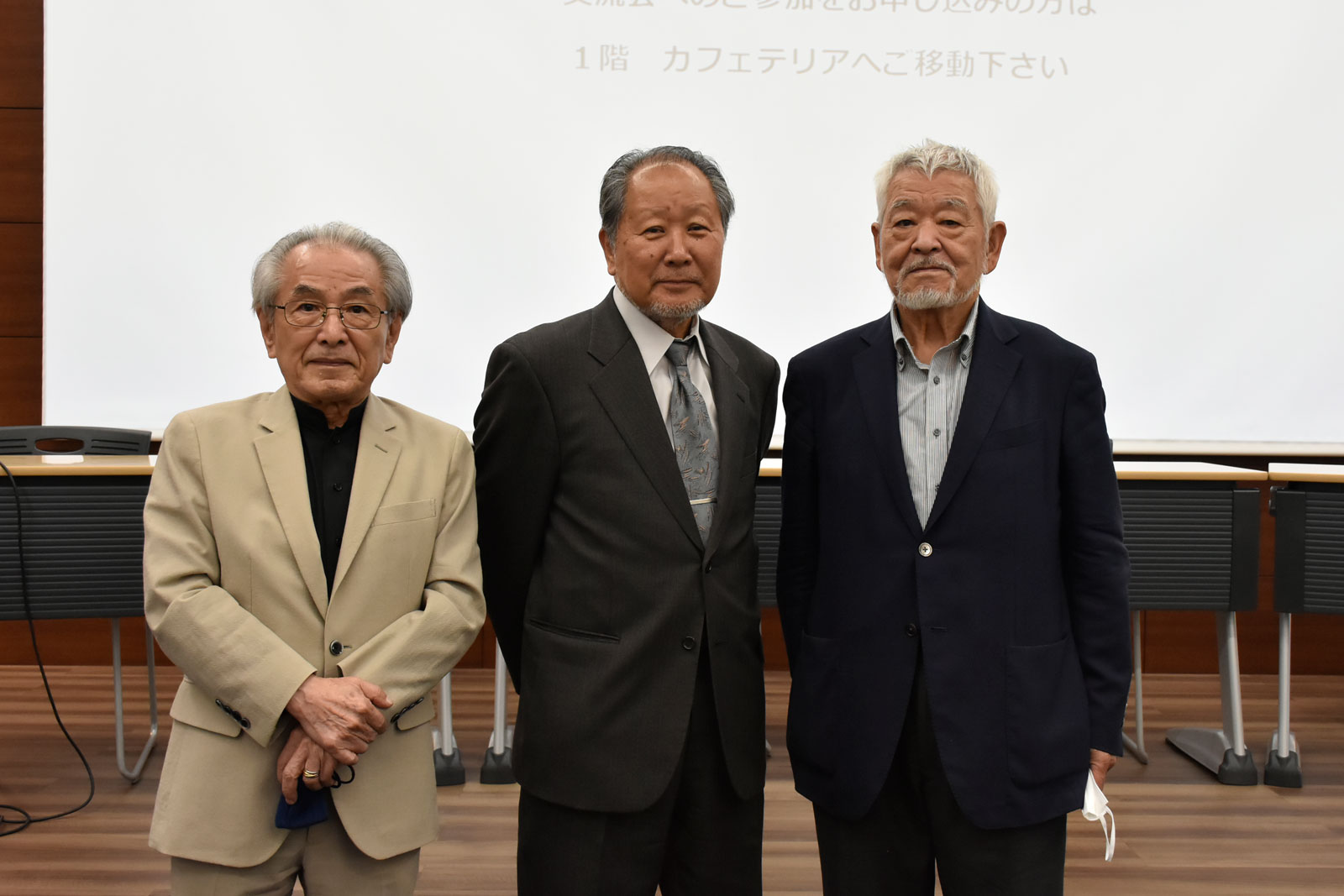 (左より森口邦彦氏、宮本貞治先生、TASK木工芸専攻村山明先生)