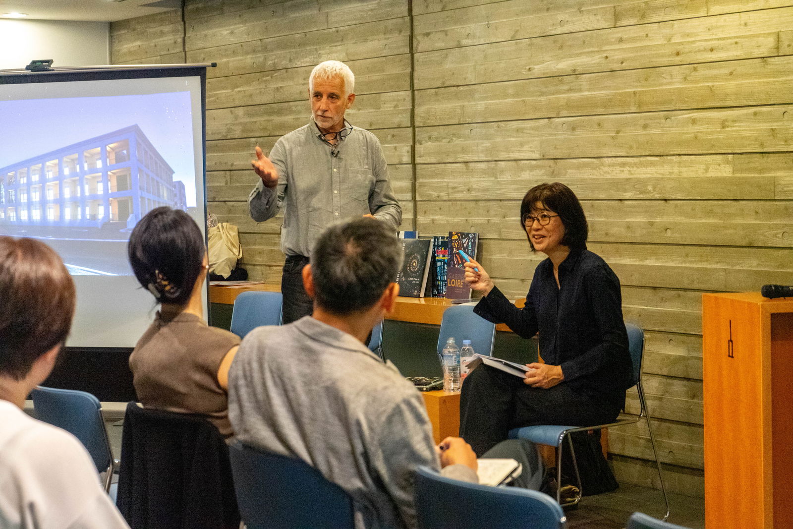 ニュイブランシュKYOTO2024のテーマである「Transmission(継承)」についてディスカッション。日仏両国の継承制度の説明した後、工芸の継承をする上でお互いの制度から学び合えることについて等の議論を深堀していきました。